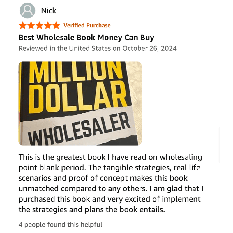 Here's What People Are Saying About the Best Selling Million Dollar Wholesaler Book